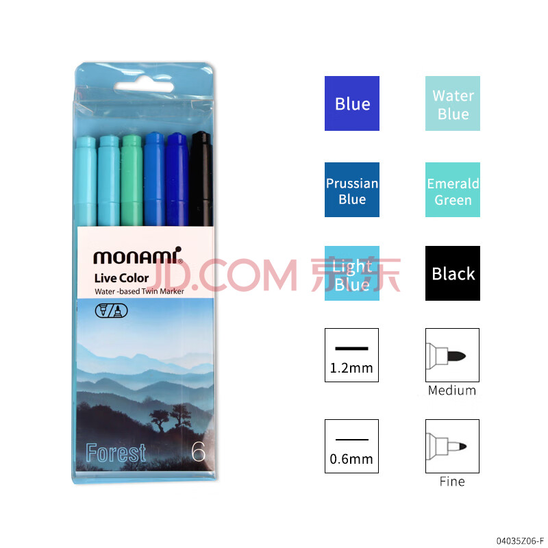 商品相册:慕那美(monami)双头水性纤维笔学生涂鸦手绘笔彩绘水彩笔手账勾线笔6色套装Forest04035Z06-F第