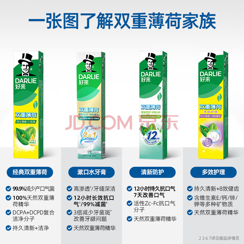 商品相册:好来(DARLIE)(原黑人)双重薄荷漱口水2合1牙膏160g清新长效抗口气新旧包装随机第