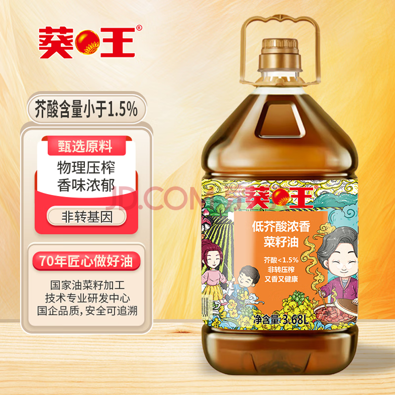 商品相册:葵王 【保真菜籽油】非转基因 低芥酸浓香菜籽油6.18L 物理压榨食用油第