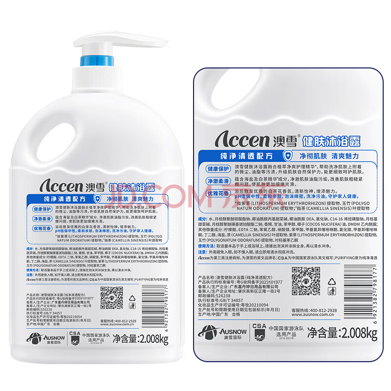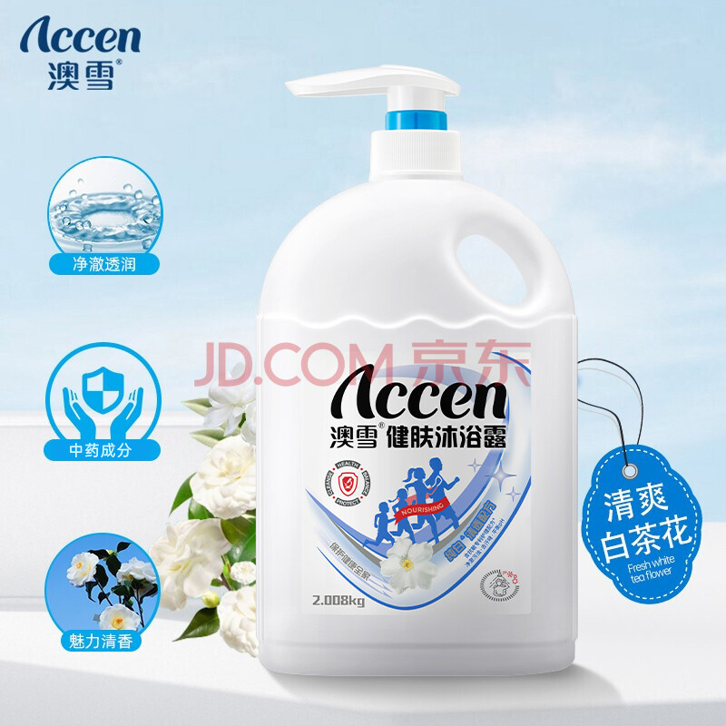 商品相册:澳雪(accen)健肤沐浴露2.008kg 纯净清透配方 海盐白茶精华呵护肌肤第