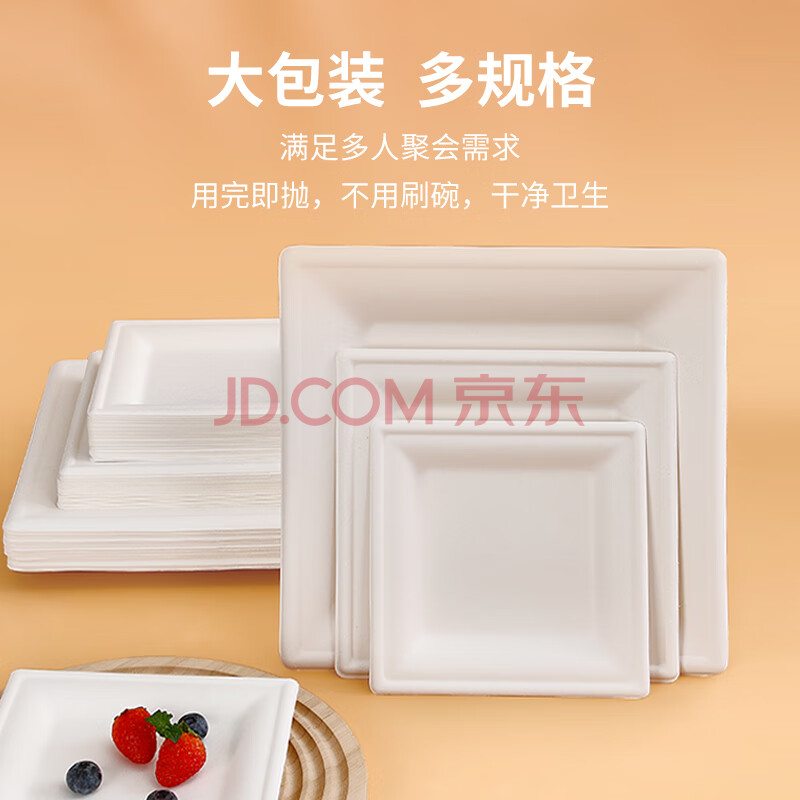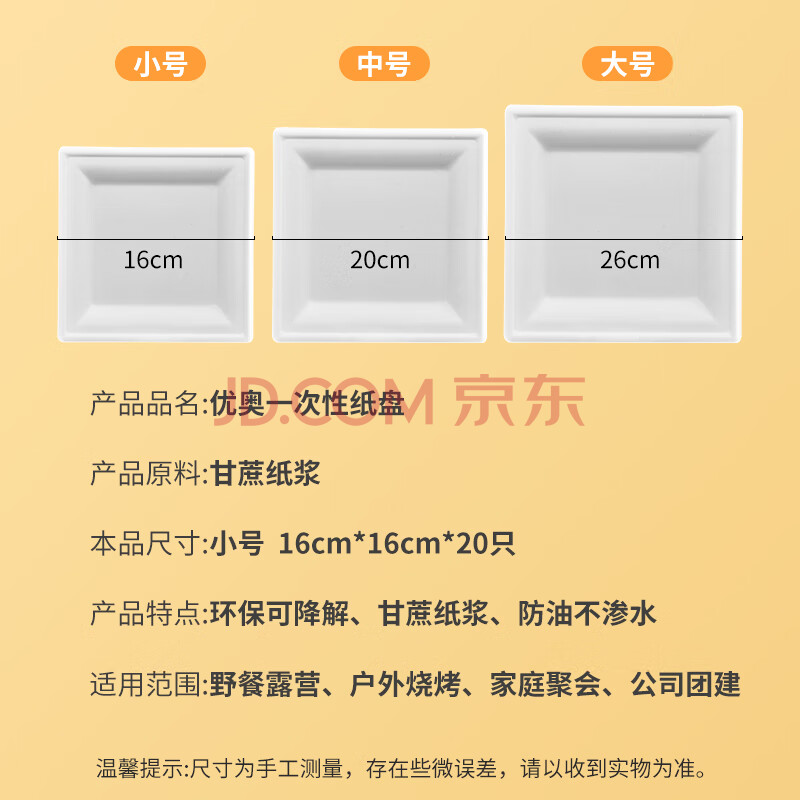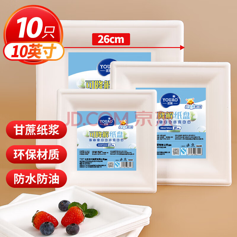 商品相册:优奥 一次性盘子方形10英寸*10只大号可降解纸盘防水防油免洗餐具用品第1张/共9