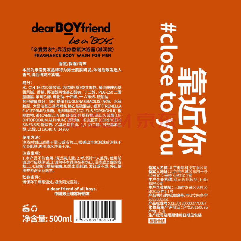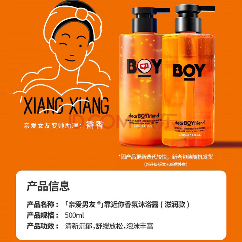 商品相册:亲爱男友沐浴露男士专用 除螨留香情趣 控油清爽持久游泳洗澡沐浴乳500ml第