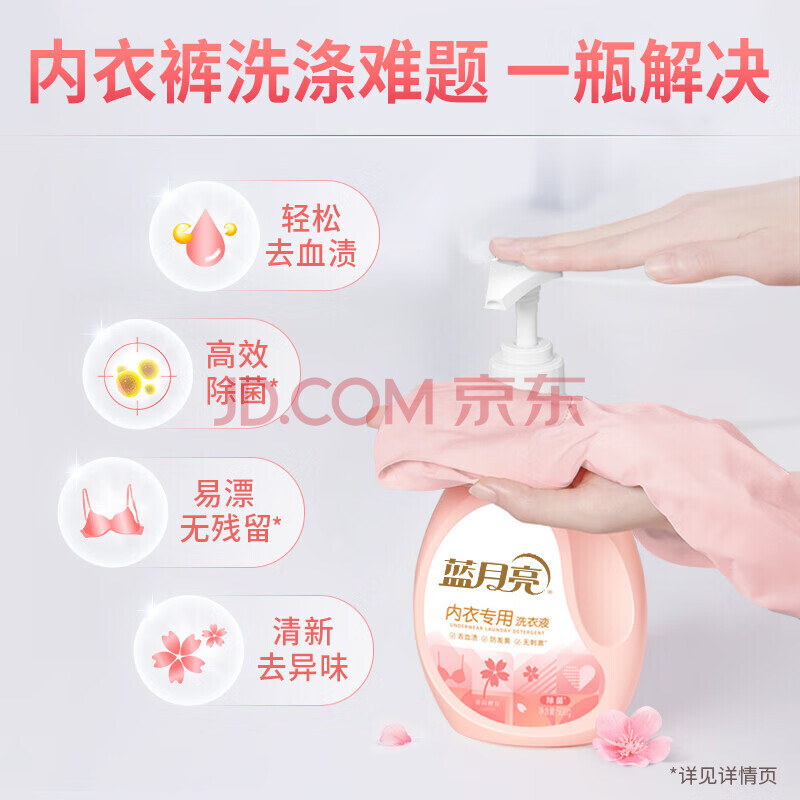 商品相册:蓝月亮手洗洗衣液内衣专用500g瓶 生理期专用易漂洗 柔润樱花香 *2 第
