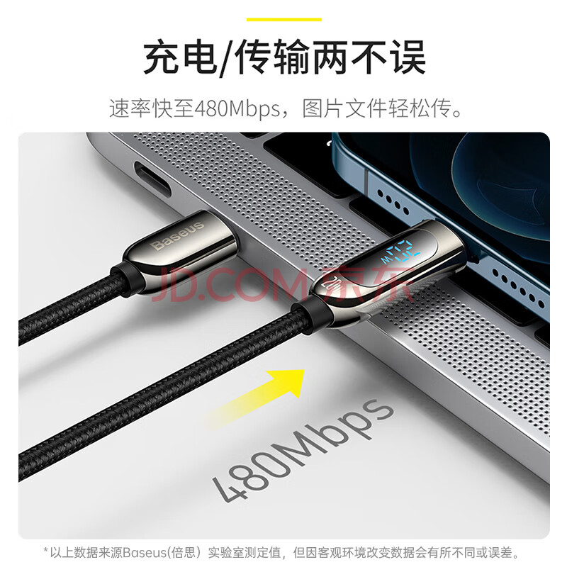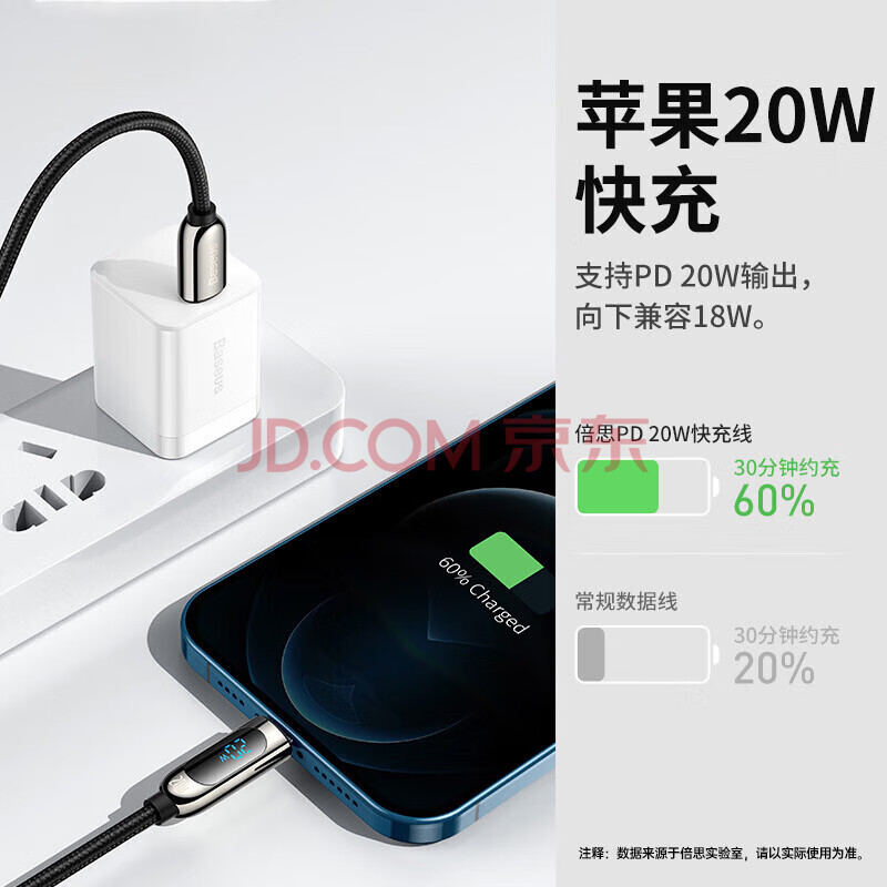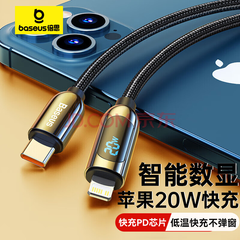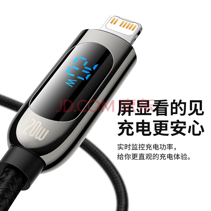 商品相册:倍思 苹果数显充电线 PD20W快充线显示功率数据线 适用iPhone14/13/12ProMax/11/Xs/XR/8P/iPad 2米黑第