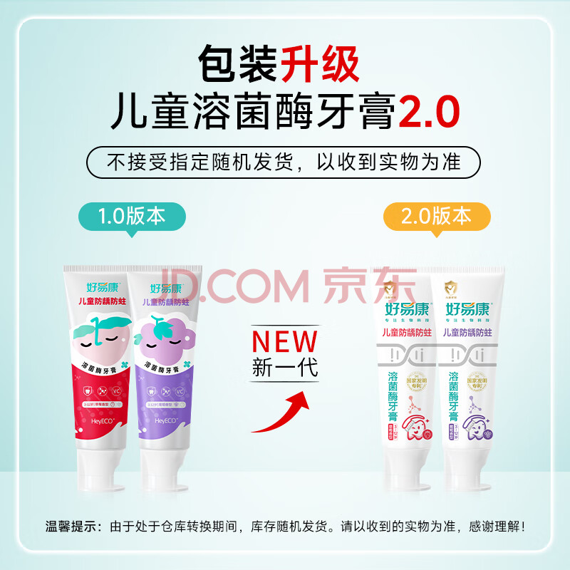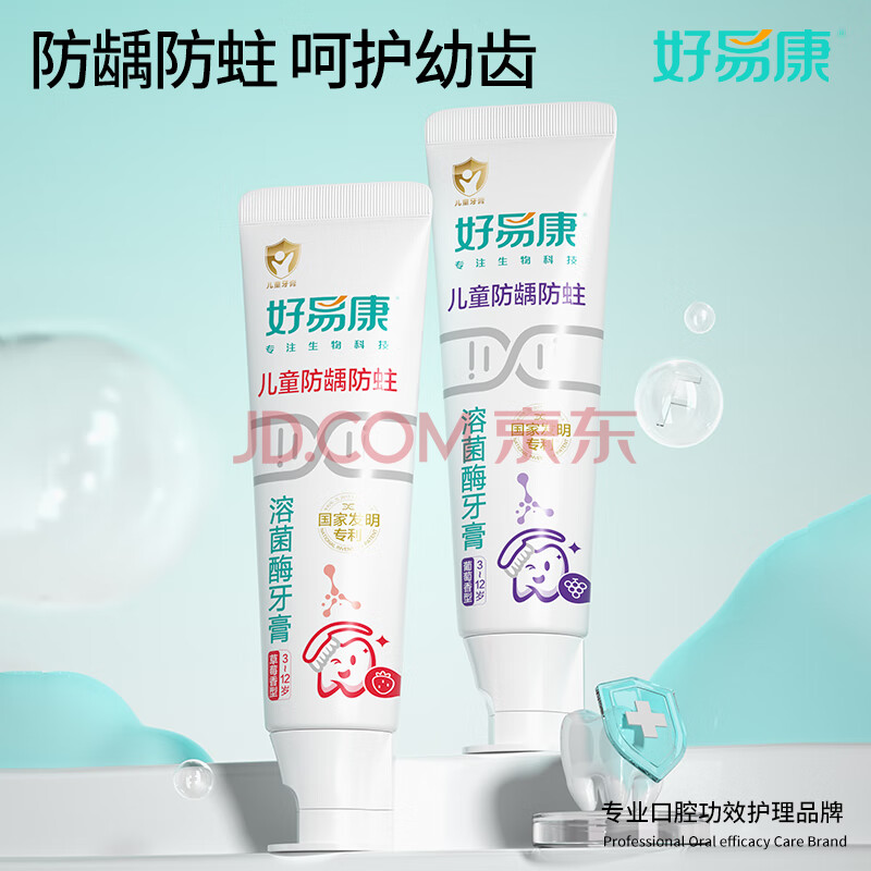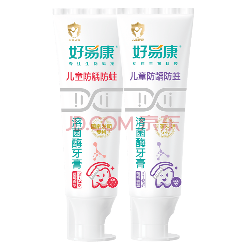 商品相册:好易康溶菌酶专研儿童牙膏 防蛀含氟配方3-12岁套装120g第
