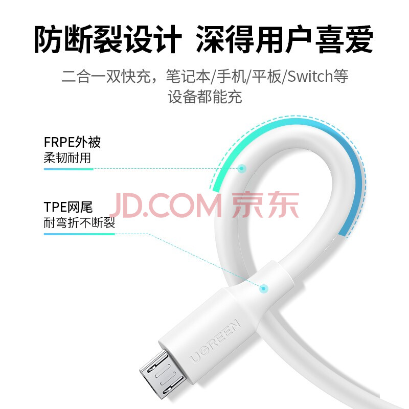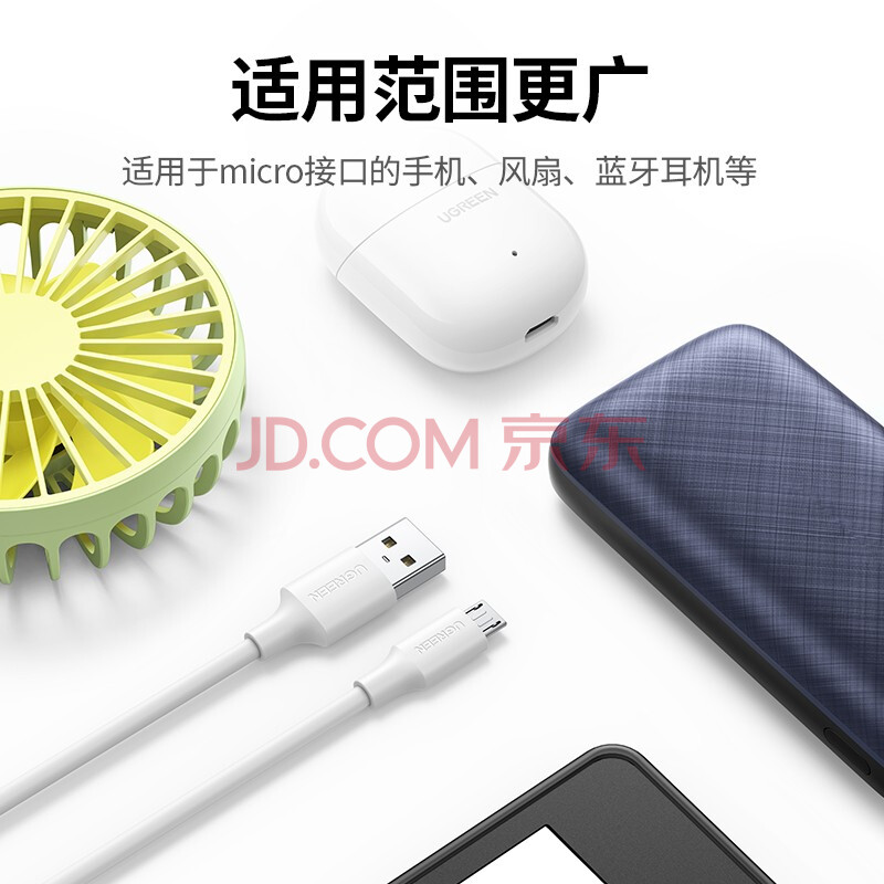 商品相册:绿联充电器 MicroUSB数据线安卓充电套装 适用于华为/小米/vivo/荣耀手机手环蓝牙耳机风扇充电头第
