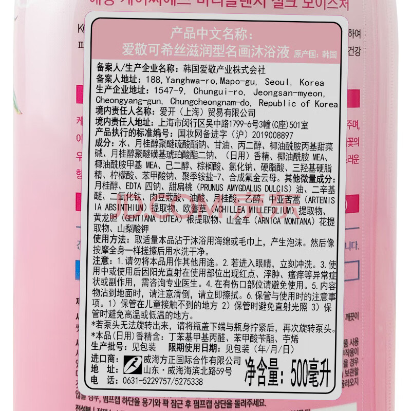 商品相册:爱敬滋润型沐浴露500ml 持久留香紧致保湿进口男女士通用沐浴液乳第