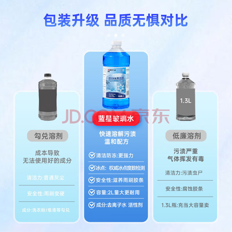 商品相册:蓝星汽车玻璃水-40度 2L*2瓶 冬季防冻强力去油膜去污雨刮水四季通用第