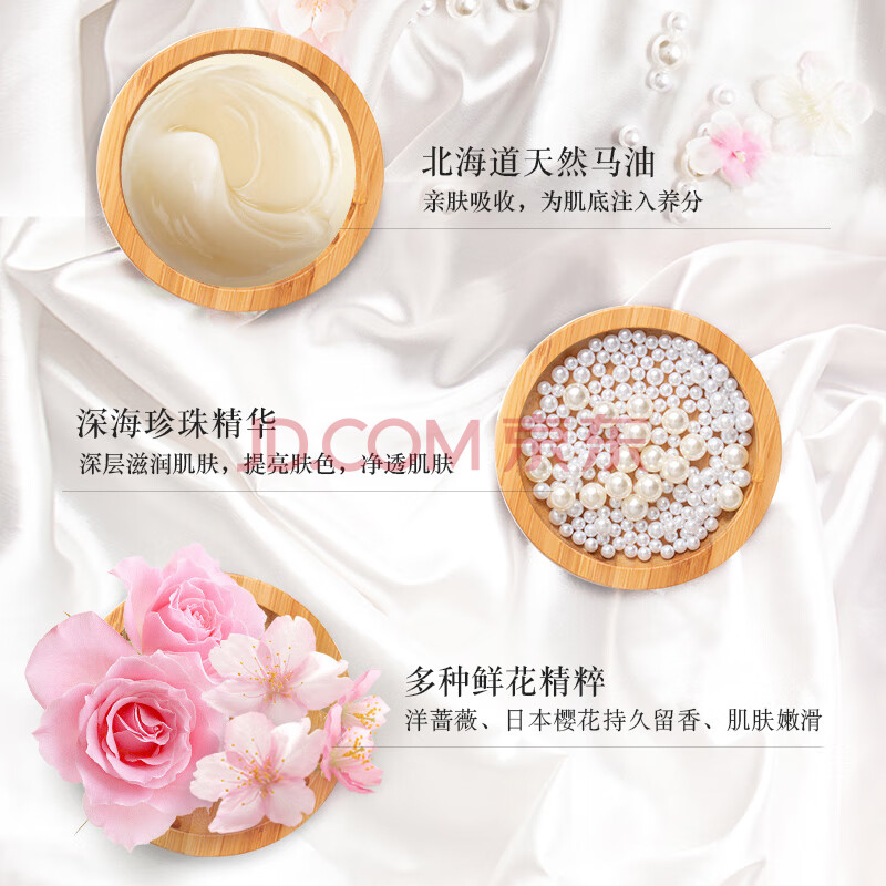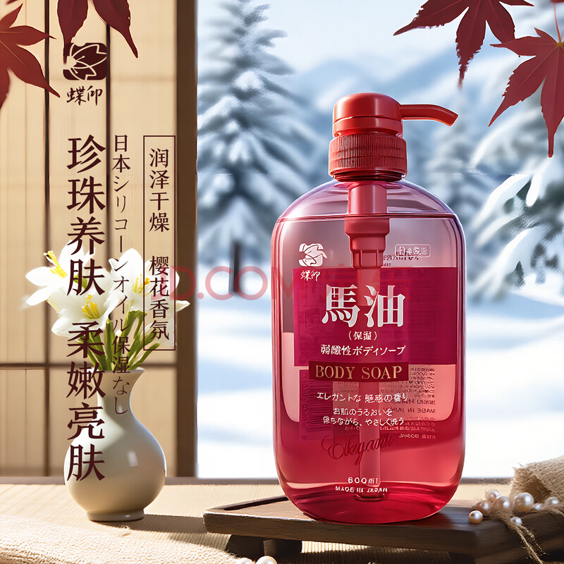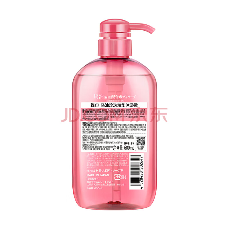 商品相册:蝶印 日本进口 北海道马油珍珠精华沐浴露600ml樱花香氛 亮泽嫩肤保湿第