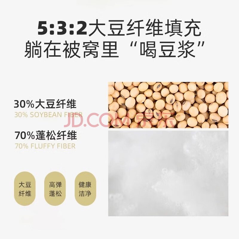商品相册:梦洁家纺燃梦30%纤维大豆被芯A类抗菌春秋四季被填充物约1000g 200*230cm第