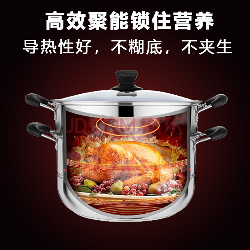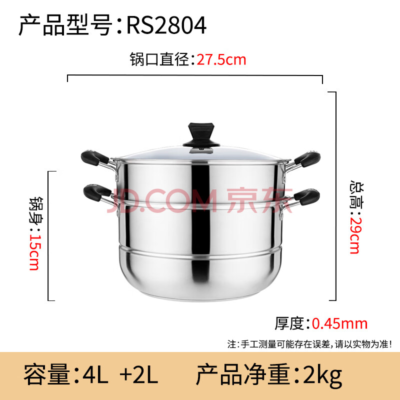 商品相册:乐仕菲斯(RSFH) 蒸锅不锈钢双层复底28cm大容量蒸鱼锅电磁炉通用汤锅蒸笼 RS2804第
