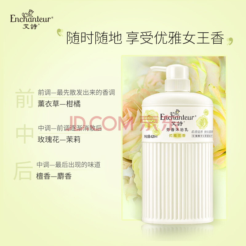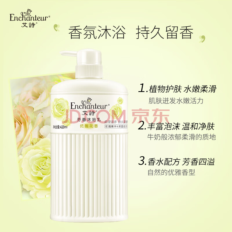 商品相册:艾诗(Enchanteur)沐浴露 柔滑滋养玫瑰精华香水沐浴乳女 优雅花香420g第