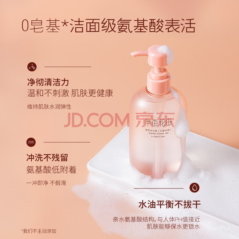 商品相册:半亩花田热巴同款氨基酸香氛沐浴露持久留香清洁滋润保湿沐浴液男女400g第