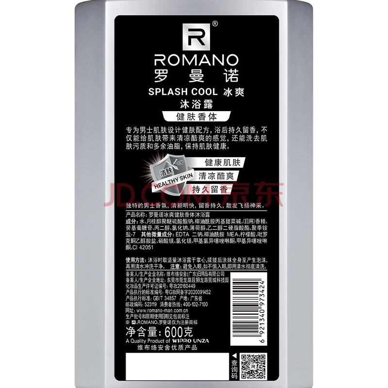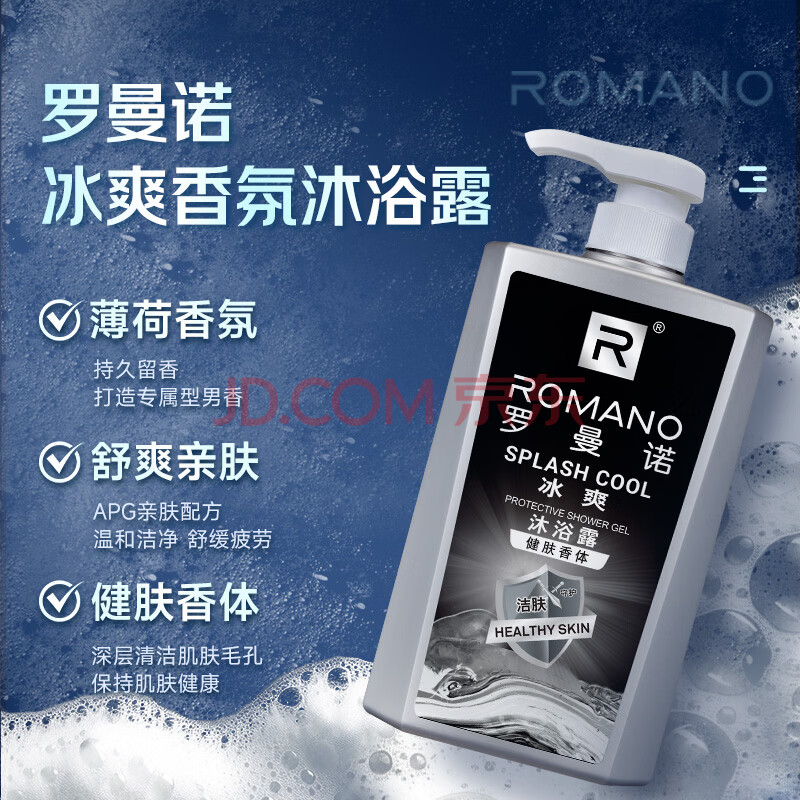 商品相册:罗曼诺(ROMANO)沐浴露男士 薄荷冰爽香氛沐浴乳 健肤清凉保湿留香持久600g第