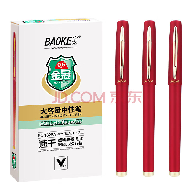 商品相册:宝克(BAOKE)宝克 BAOKE PC1828A 大容量中性笔0.5mm 日常书写办公签字笔水笔 红色 12支/盒第