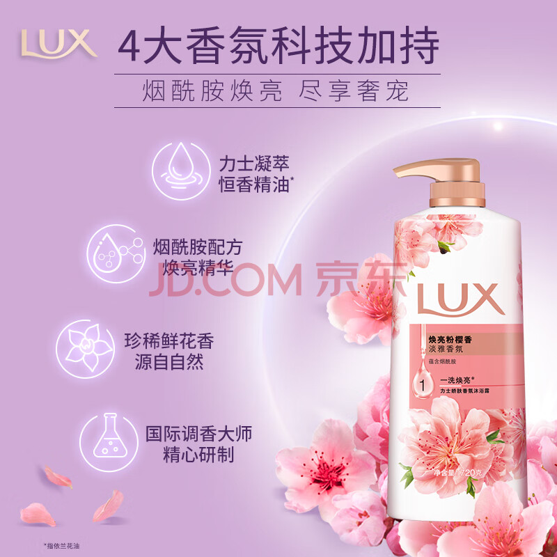 商品相册:力士(LUX)焕亮粉樱香 淡雅香氛 爽肤沐浴乳720g 留香第