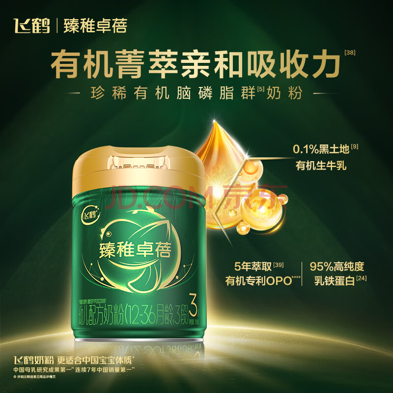 商品相册:飞鹤臻稚卓蓓有机 幼儿配方奶粉3段(1-3岁)700g【6种HMOs】乳铁蛋白第