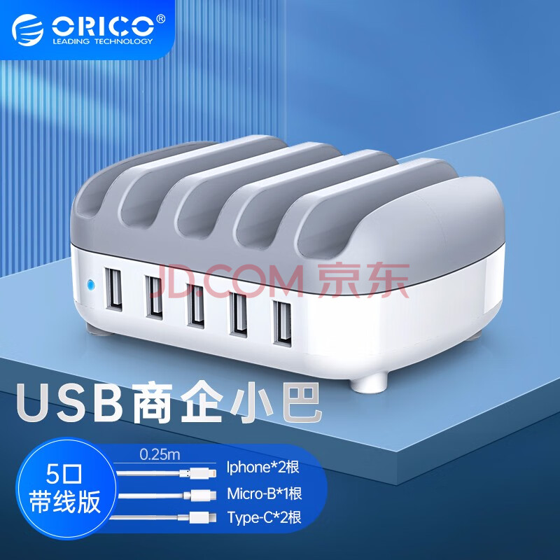 商品相册:奥睿科(ORICO)多口充电器 40W大功率5口USB苹果华为手机ipad充电站带支架设计/带五根充电线 DUK-5P-DX白第