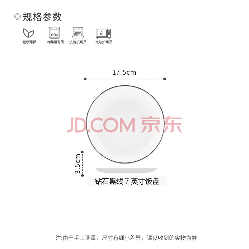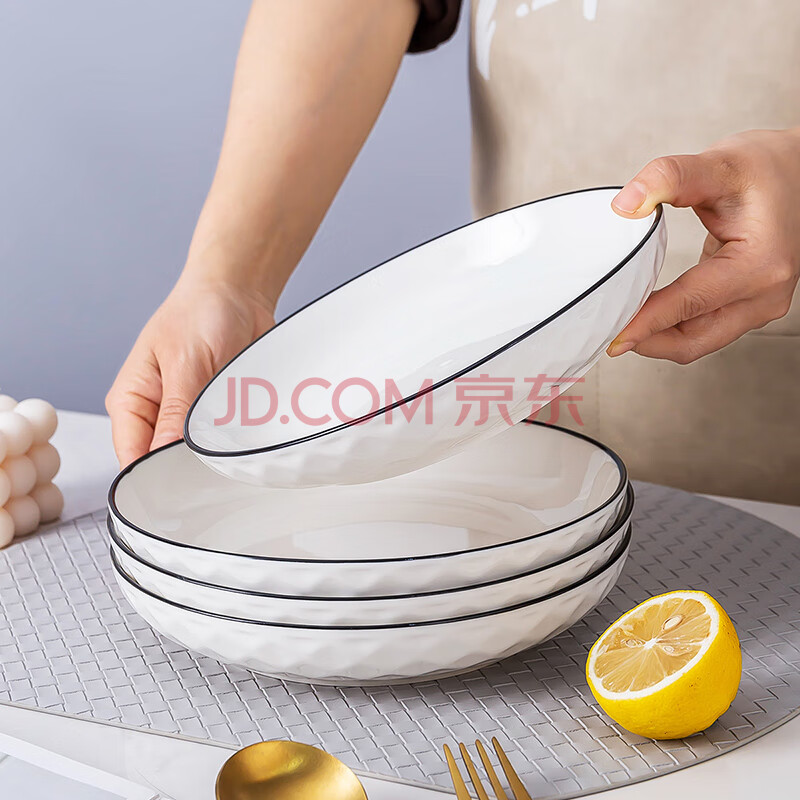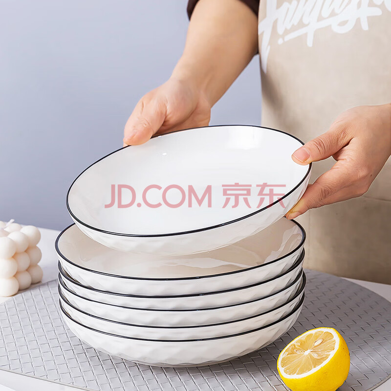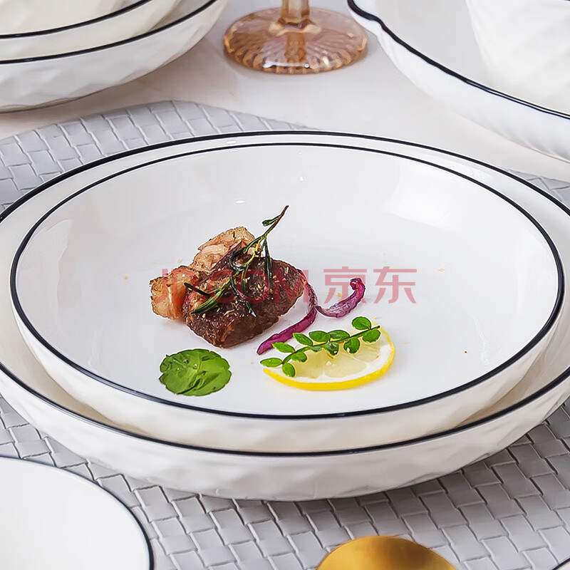 商品相册:浩雅景德镇釉下彩陶瓷餐具家用餐盘菜盘汤盘深盘钻石黑线7英寸2个装第