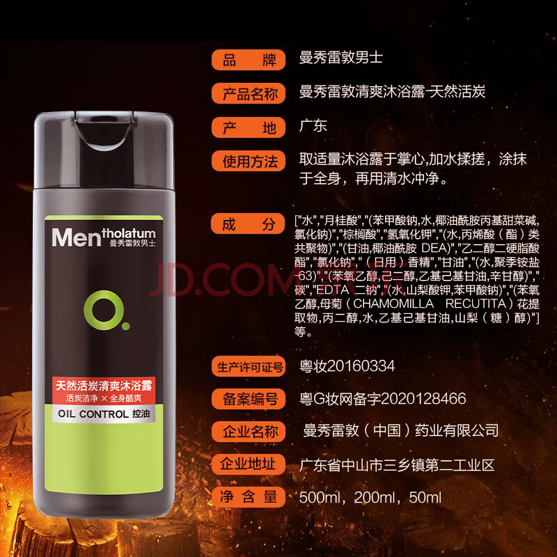 商品相册:曼秀雷敦男士沐浴露便携旅行装-天然活炭200ml 深层清洁运动去汗味沐浴液第