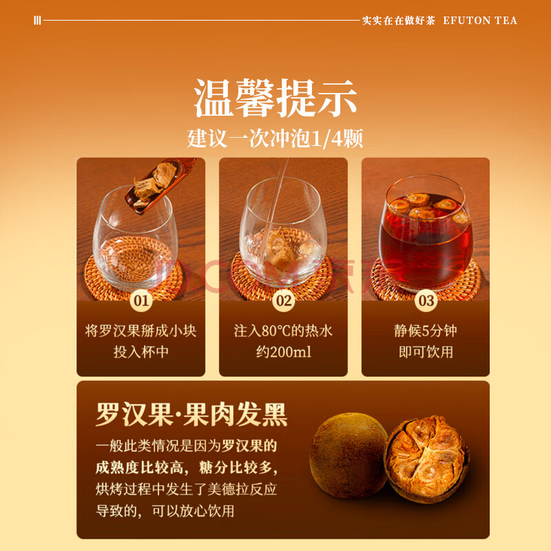 商品相册:艺福堂花草茶 罗汉果大果养生茶100g 广西特产干果清润凉茶秋梨膏配方第