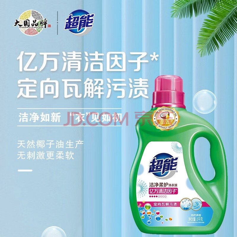 商品相册:超能洁净柔护洗衣液2kg 天然自然清香亿万清洁因子定向瓦解污渍 家庭清洁装 第