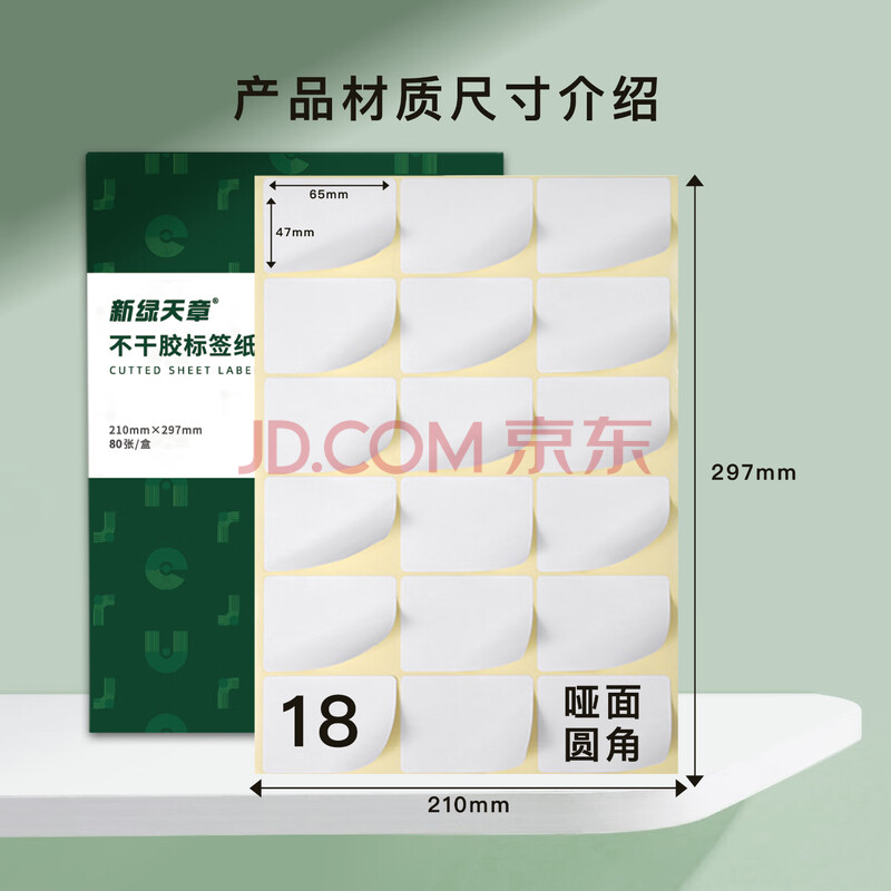 商品相册:天章 (TANGO)【高品质80g面纸】A4不干胶打印纸 亚面黄底 圆角18枚/张(65*47mm)80张/盒 通用喷墨激光打印机第