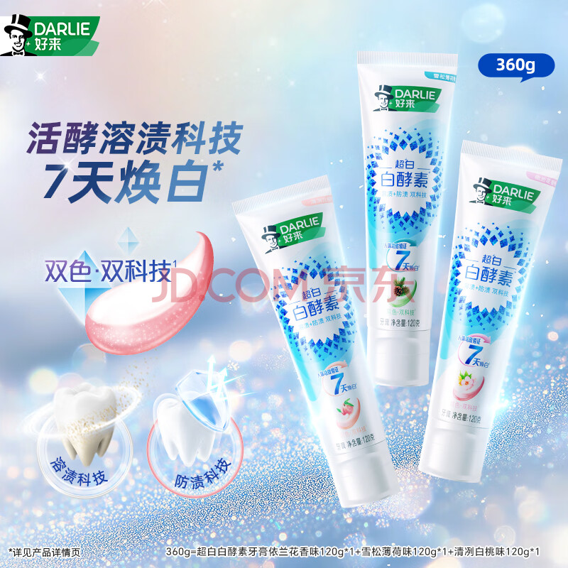 商品相册:好来(原黑人)白酵素牙膏美白去黄去烟渍3支 共360g(新旧包装随机)第