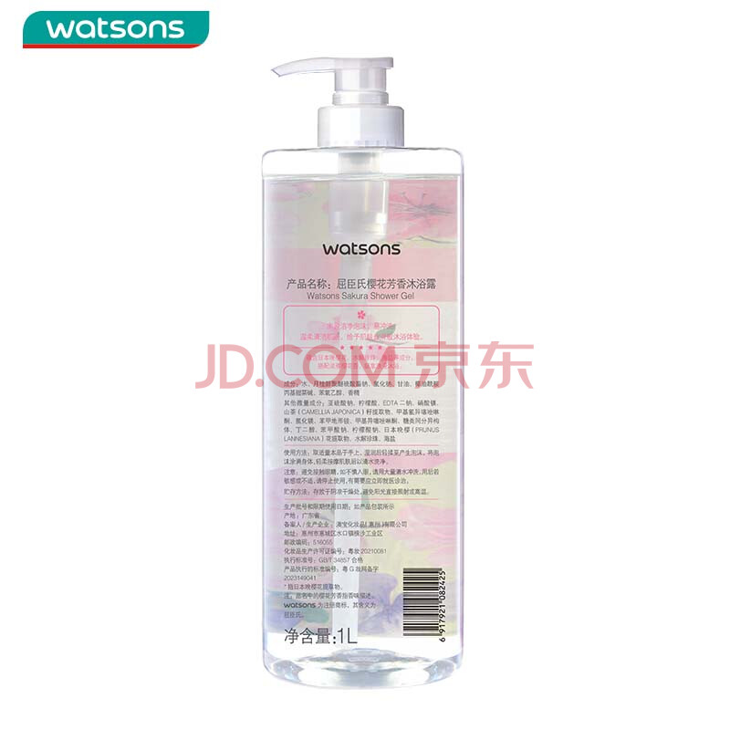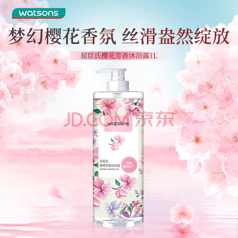 商品相册:屈臣氏樱花淡雅沐浴露1L(樱花精华 珍珠粉精华 温和清洁)第