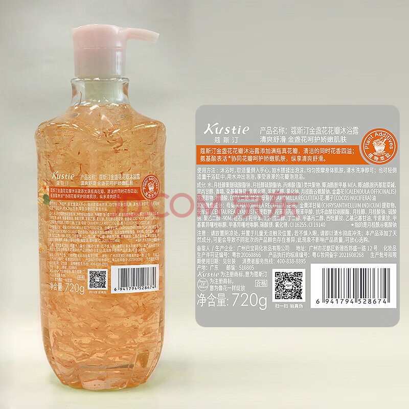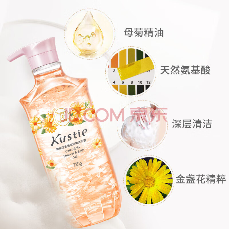 商品相册:蔻斯汀(Kustie)Kustie 香味持久美肌沐浴乳 男女通用滋润 金盏花花瓣沐浴露720g第