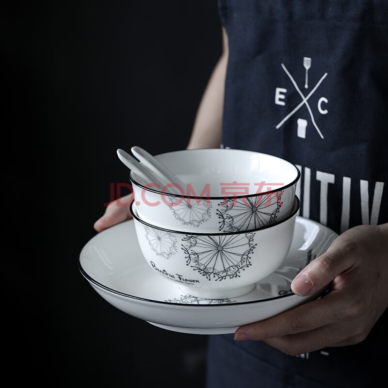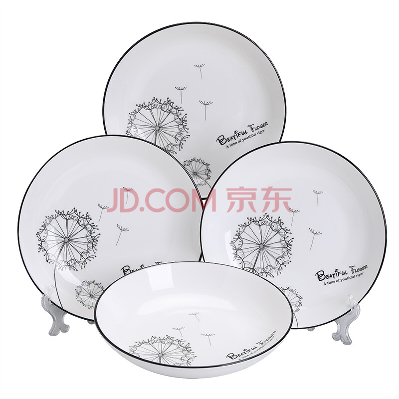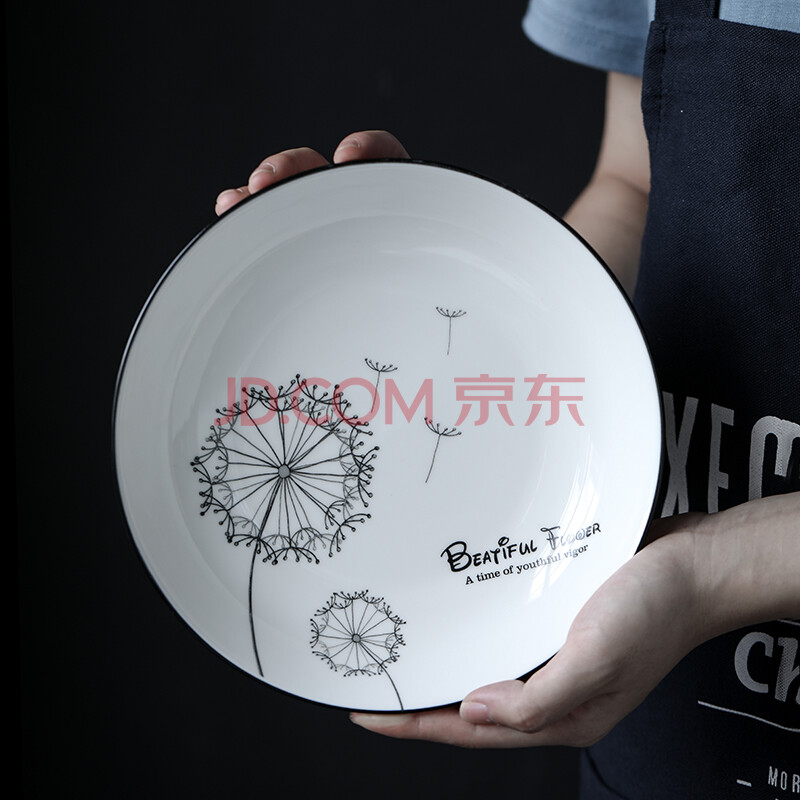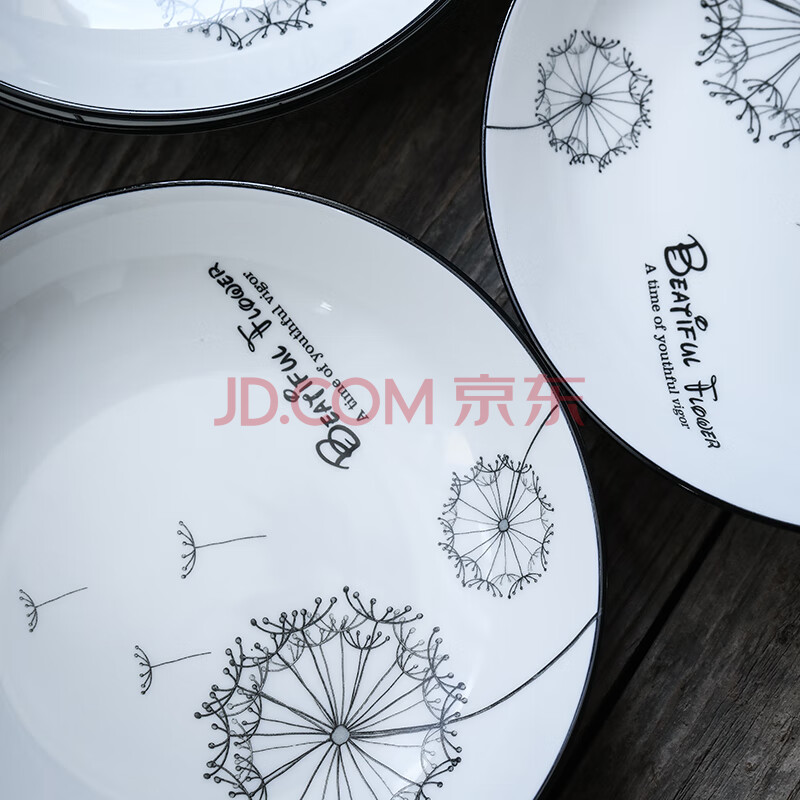 商品相册:苏氏陶瓷汤盘子蒲公英简约家用陶瓷菜盘子8英寸4只装餐具套装J0302第