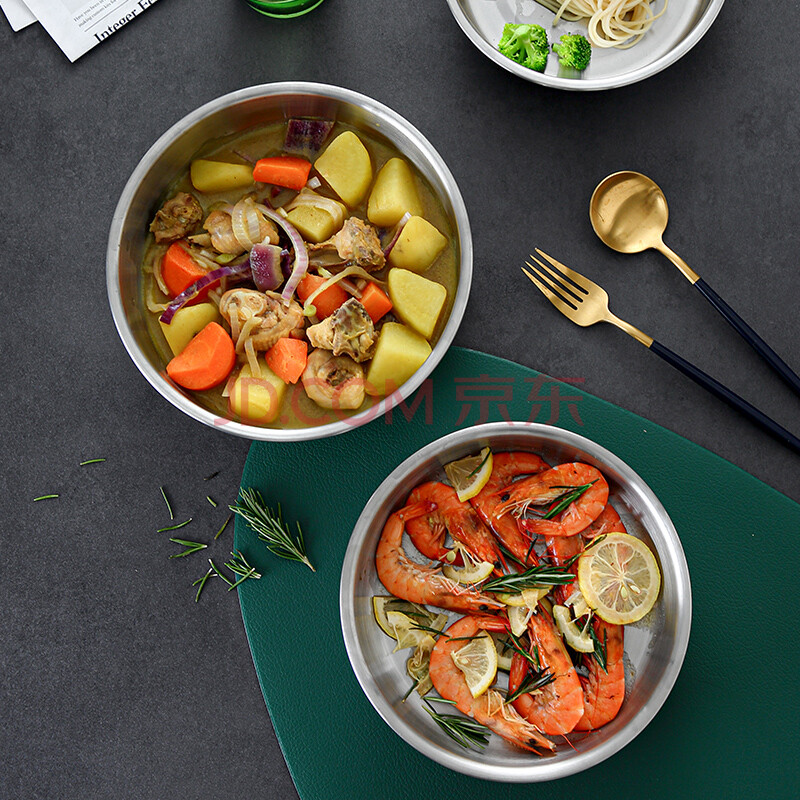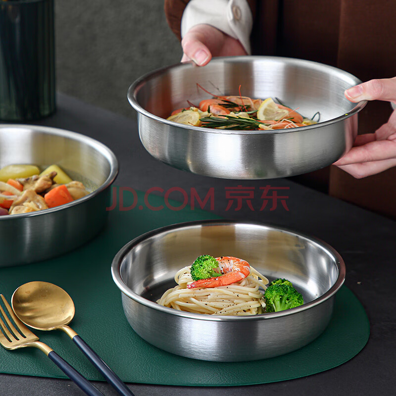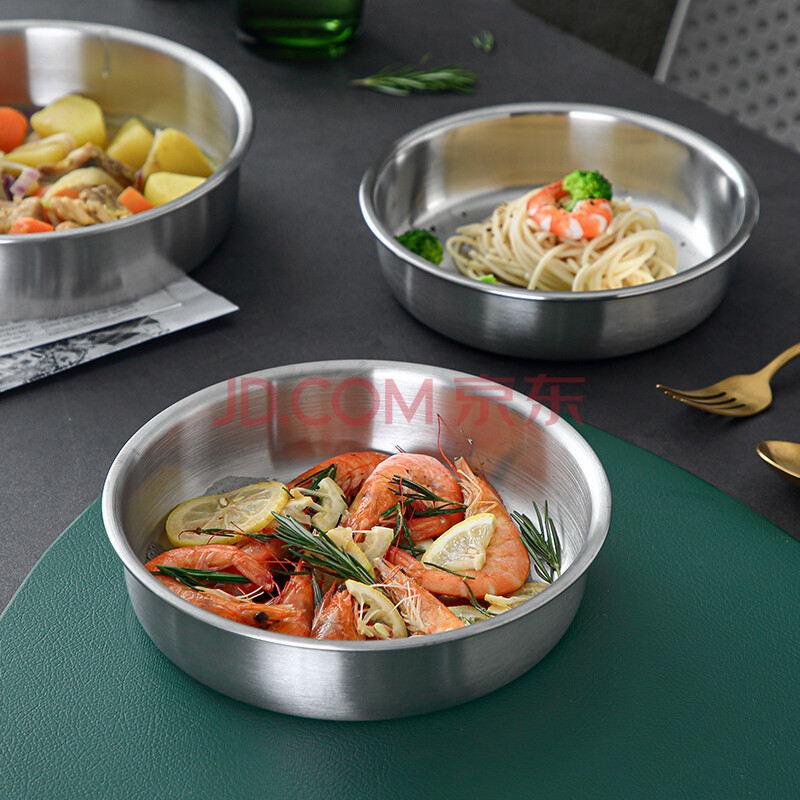 商品相册:onlycook304不锈钢饺子盘 大盘子鱼盘菜盘深盘牛排盘碟 20cm直径/个第