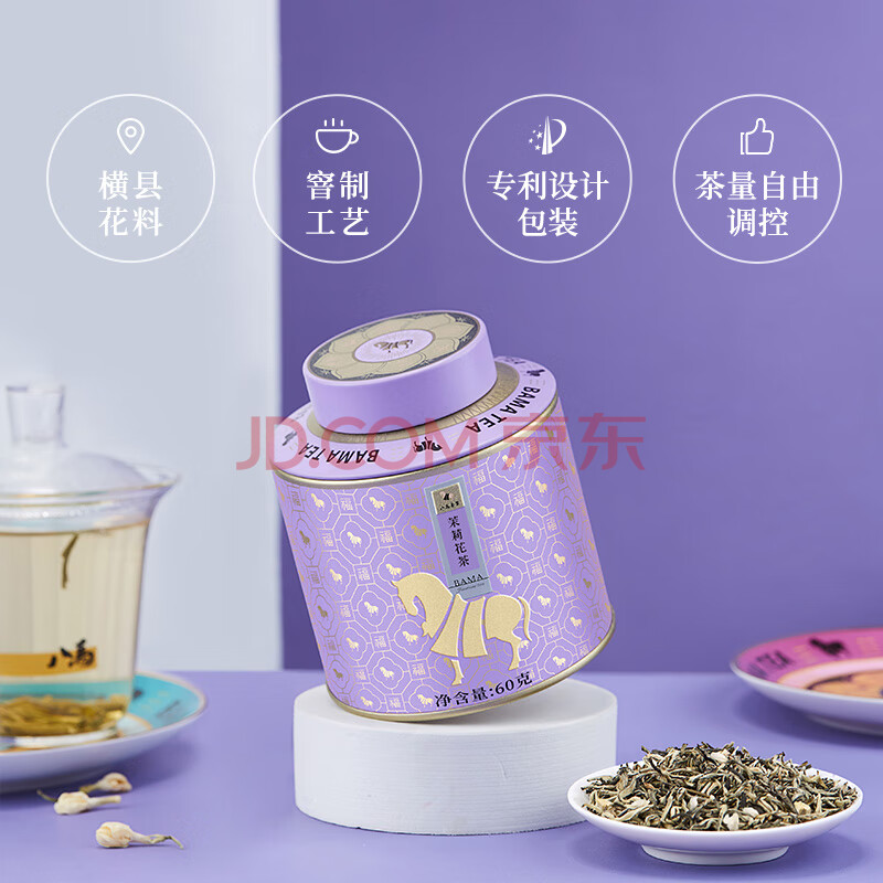 商品相册:八马茶业 特级 烘青茉莉花茶 云南绿茶 百福系列 茶叶自己喝 罐装60g第