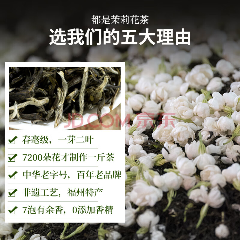 商品相册:春伦大白毫茉莉花茶叶特级自己喝口粮茶2026新茶浓香型送礼罐装100g第