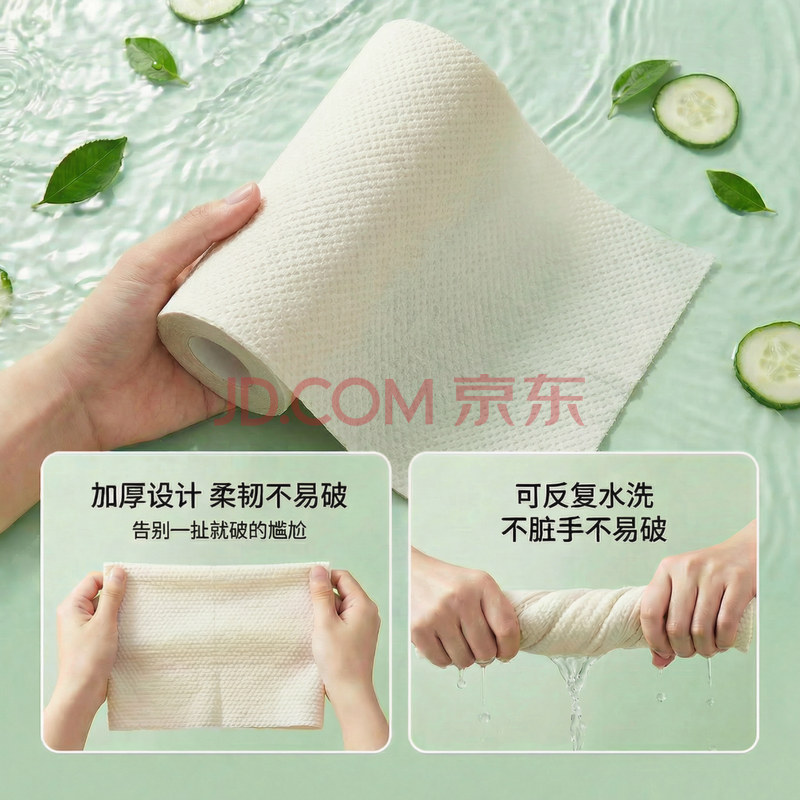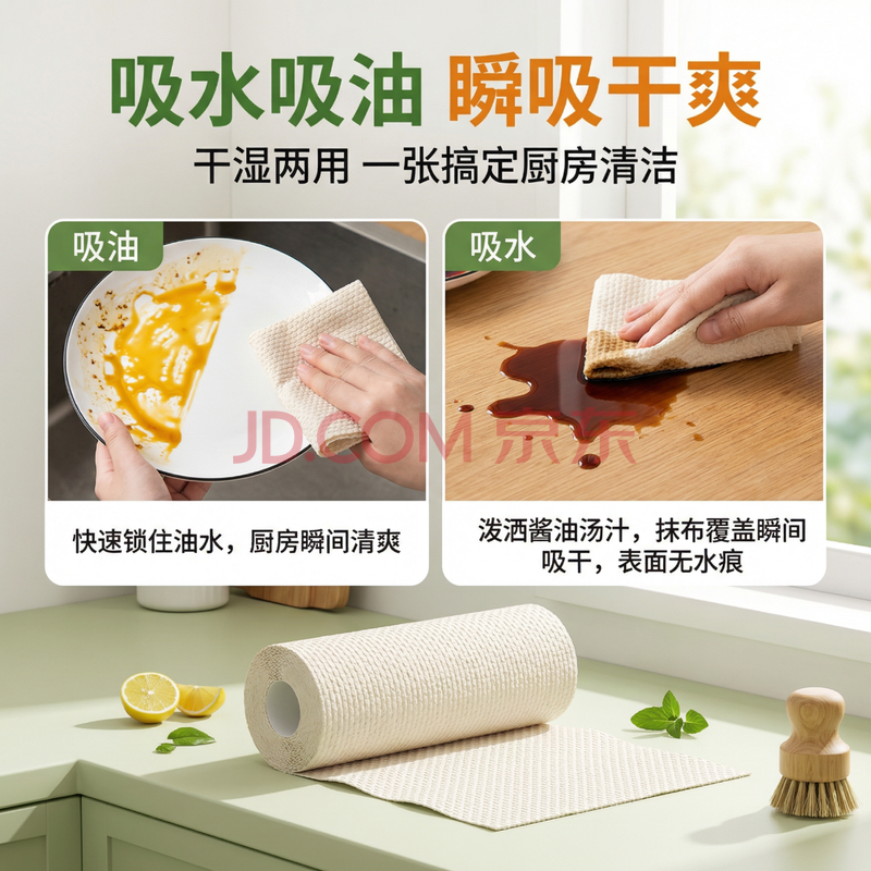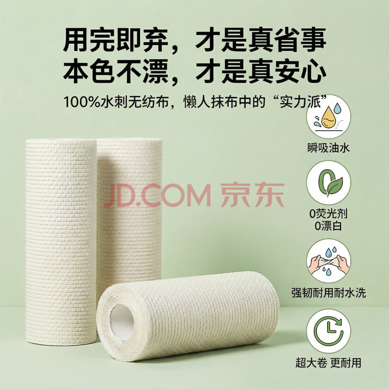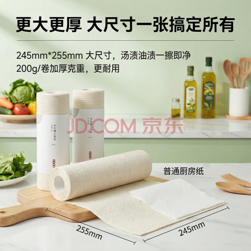 商品相册:京东京造 懒人抹布 本色抑菌 加厚厨房用纸50节*12卷 吸油一次性洗碗抹布第