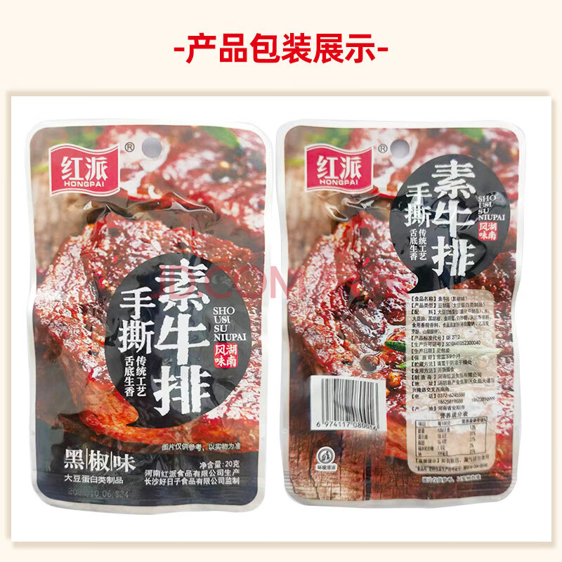 商品相册:红派手撕素牛排黑椒味20g*20包/盒素肉豆干解馋零食 大礼包第