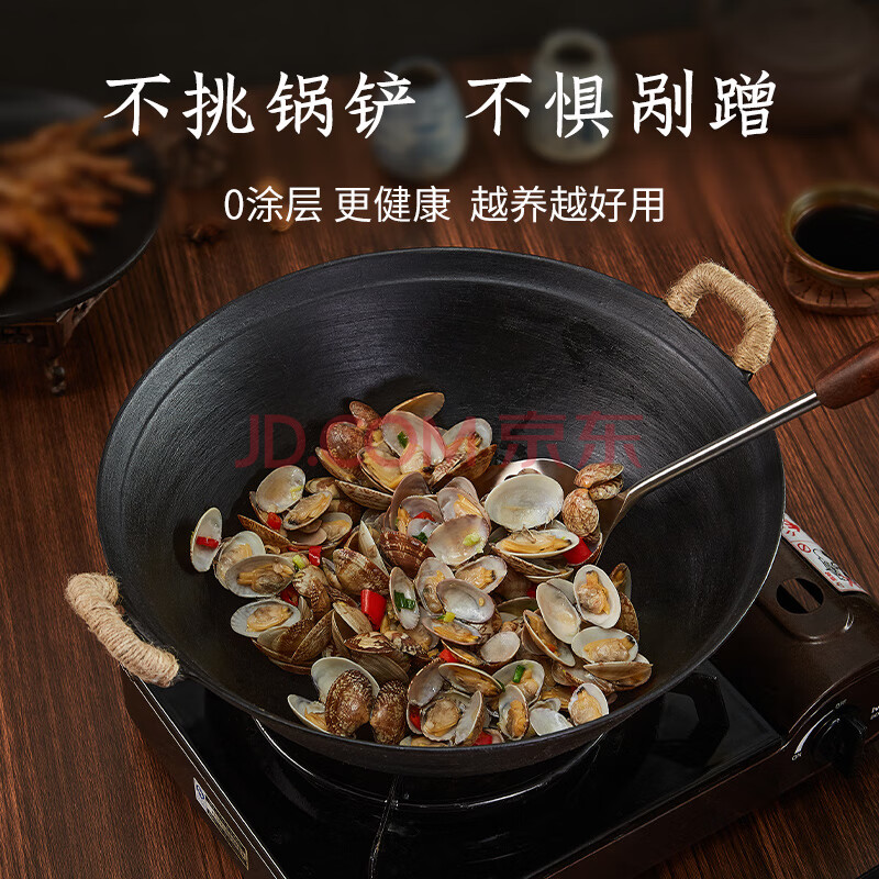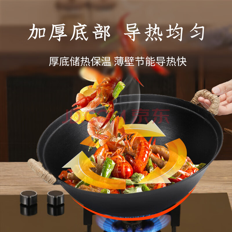 商品相册:王源吉铁锅炒锅双耳老式家用圆底苏锅王无涂层龟纹大肚炒菜锅铸铁锅32cm第