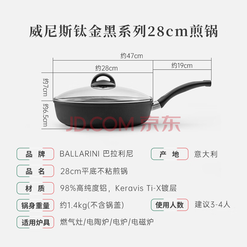 商品相册:巴拉利尼(BALLARINI)不粘锅电磁炉燃气灶通用深煎锅钛金平底锅牛排烤肉锅威尼斯黑28cm第