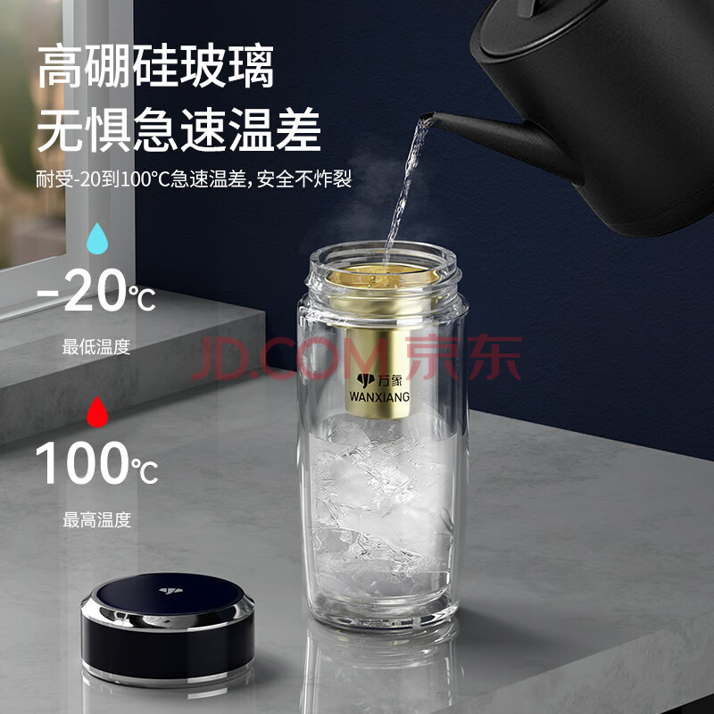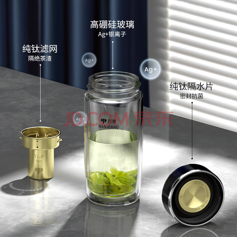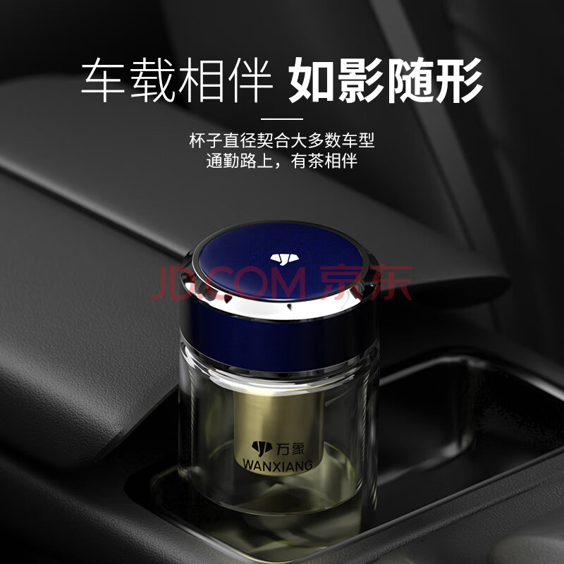 商品相册:万象(WANXIANG)钛银抗菌商务高档便携车载泡茶杯TV56夜光蓝350ml杯双层玻璃杯第