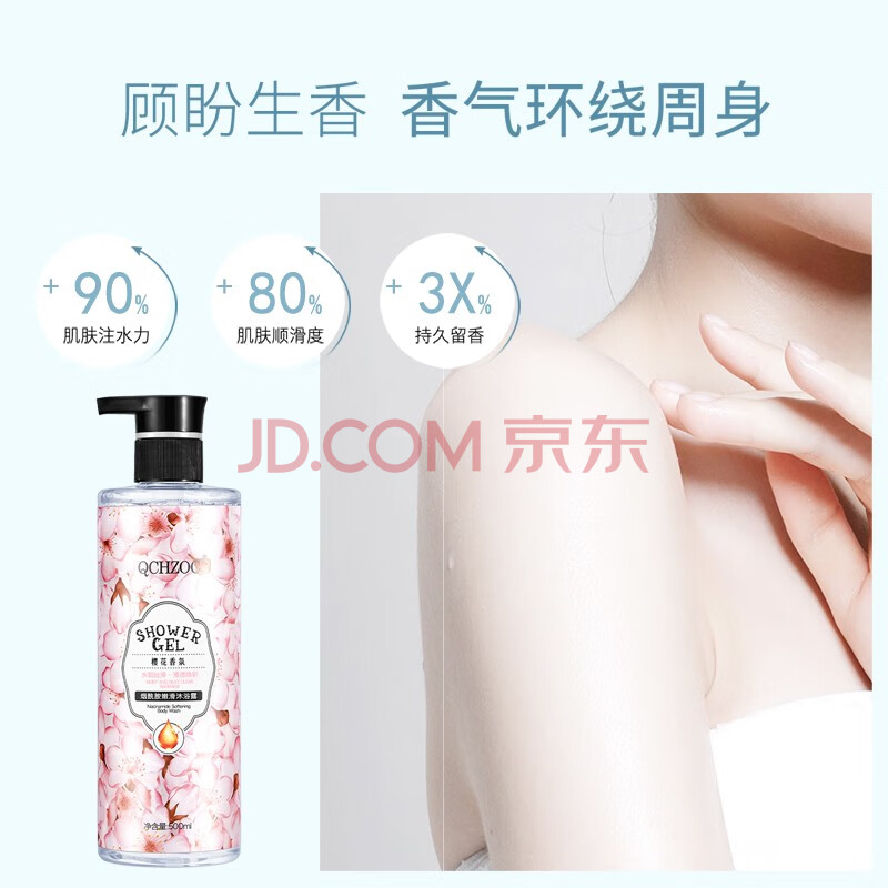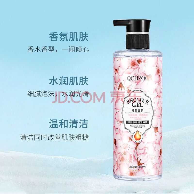 商品相册:QCHZOC樱花滋养嫩肤烟酰胺亮肤植萃香氛沐浴露 500ml/瓶第
