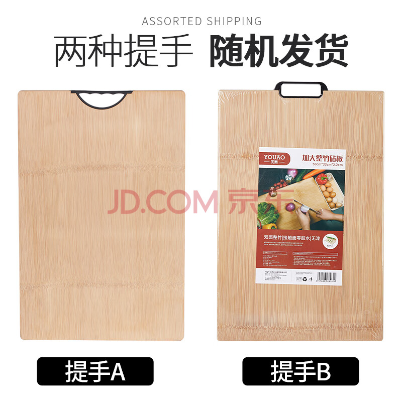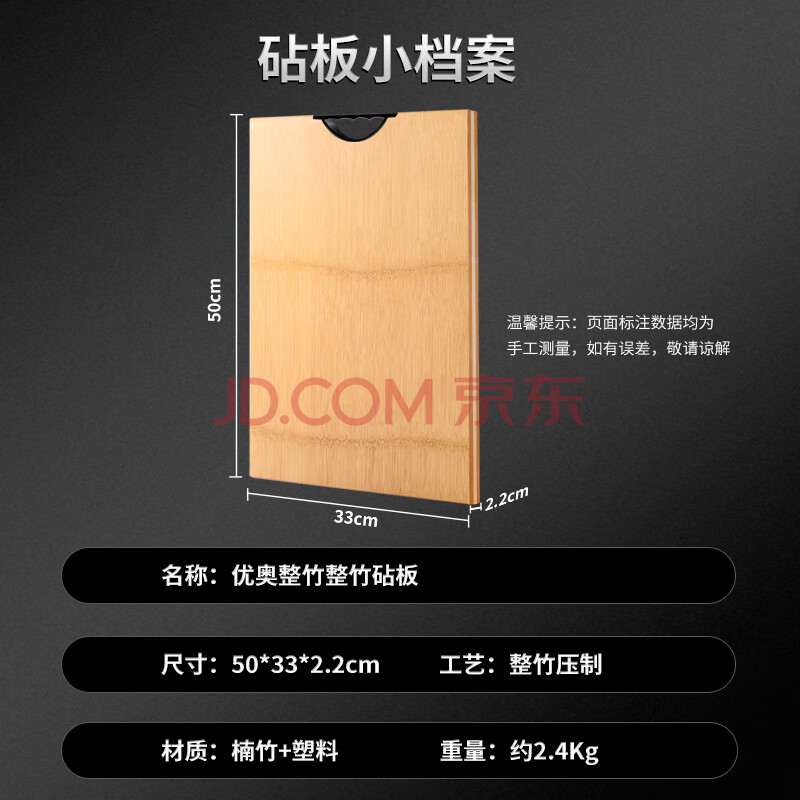 商品相册:优奥 整竹菜板 擀面板 加厚包饺子砧板 耐砍剁切菜板 (50*33*2.2cm)第
