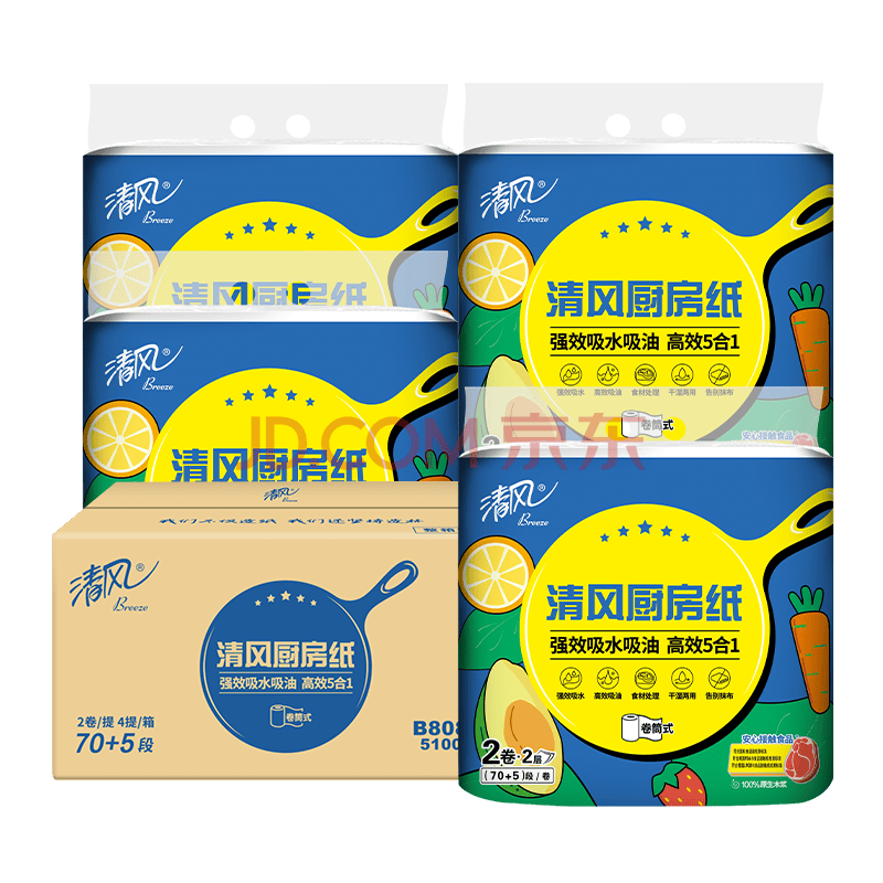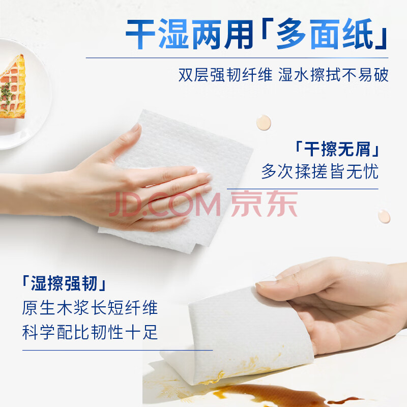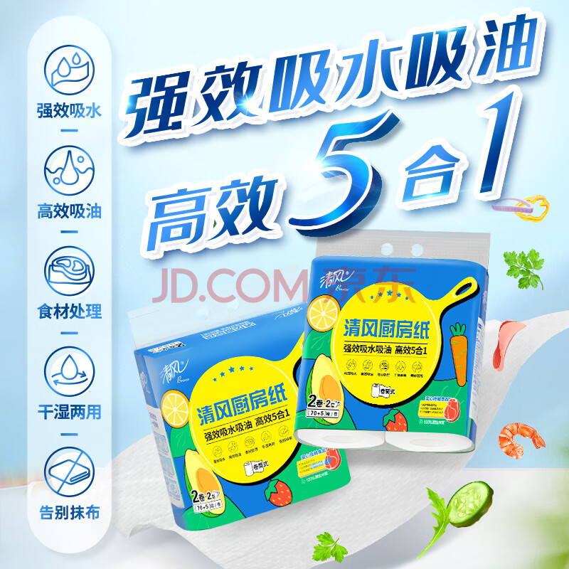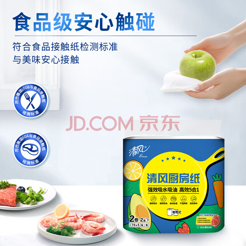商品相册:清风厨房卷纸2层75节*8卷 可食品接触级 吸油吸水 一次性懒人抹布整箱第