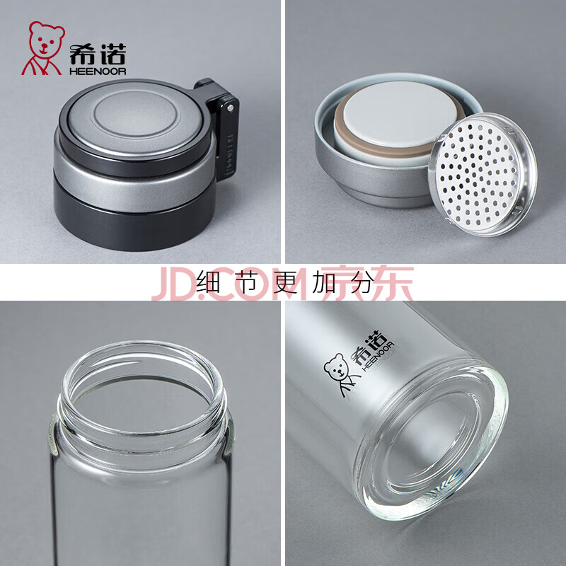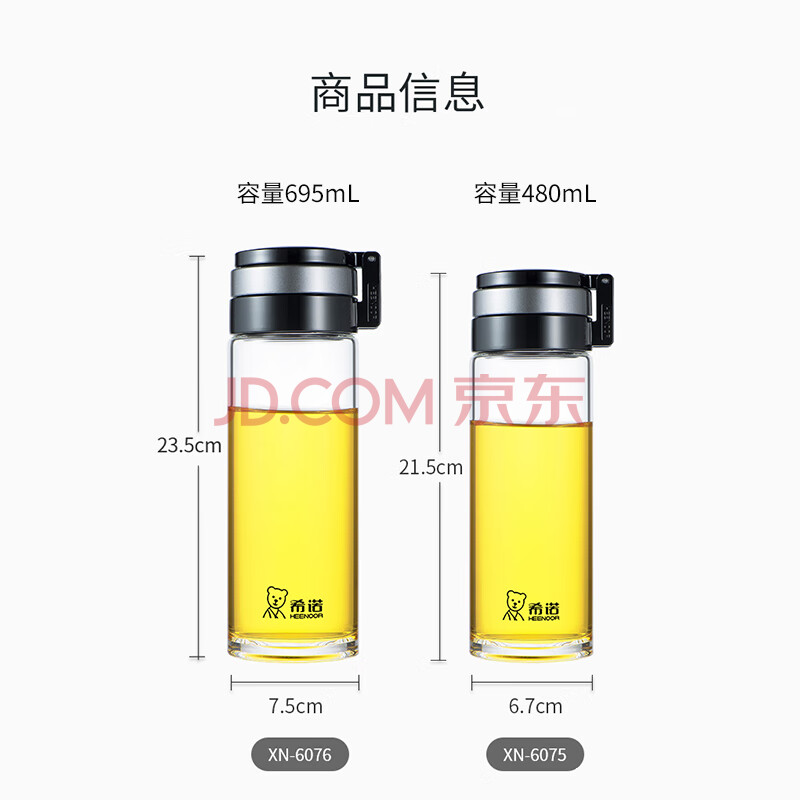 商品相册:希诺单层玻璃杯大容量便携提环运动水杯男过滤泡茶杯子XN-6075 480mL第