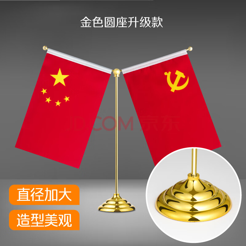 商品相册:优和(UHOO)国庆节党旗国旗摆件办公室桌面会议室桌旗中国小国旗小红旗带底座五星红旗帜 金色圆座Y型0278第