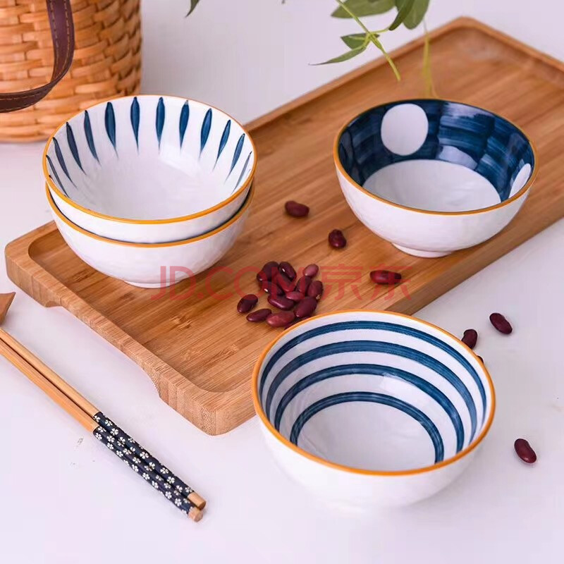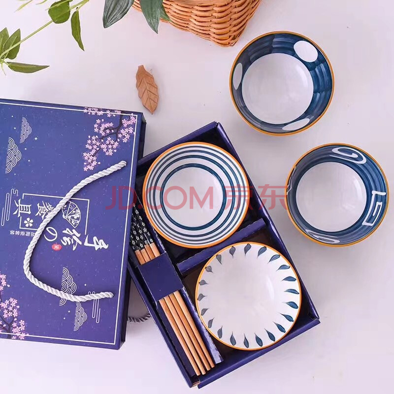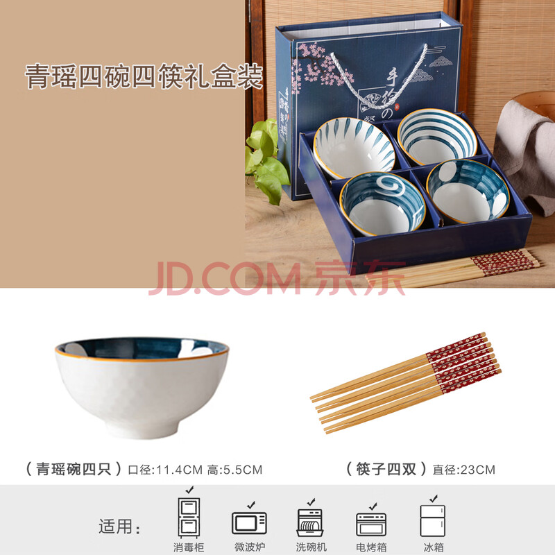 商品相册:泰鑫兴 4.5英寸釉下彩碗筷餐具年会婚庆伴手礼碗具礼盒装四碗四筷 青瑶第