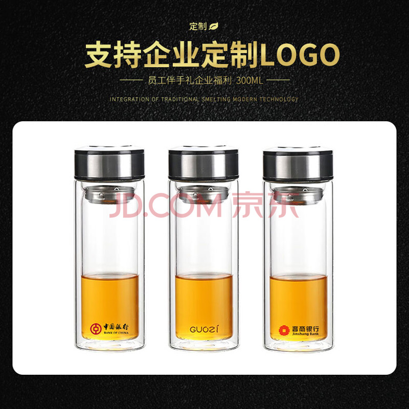 商品相册:果兹(GUOZI)GZ-S01 雅悦双层保温杯 泡茶杯双层玻璃女喝茶玻璃茶杯子企业定制logo员工伴手礼 300ml第
