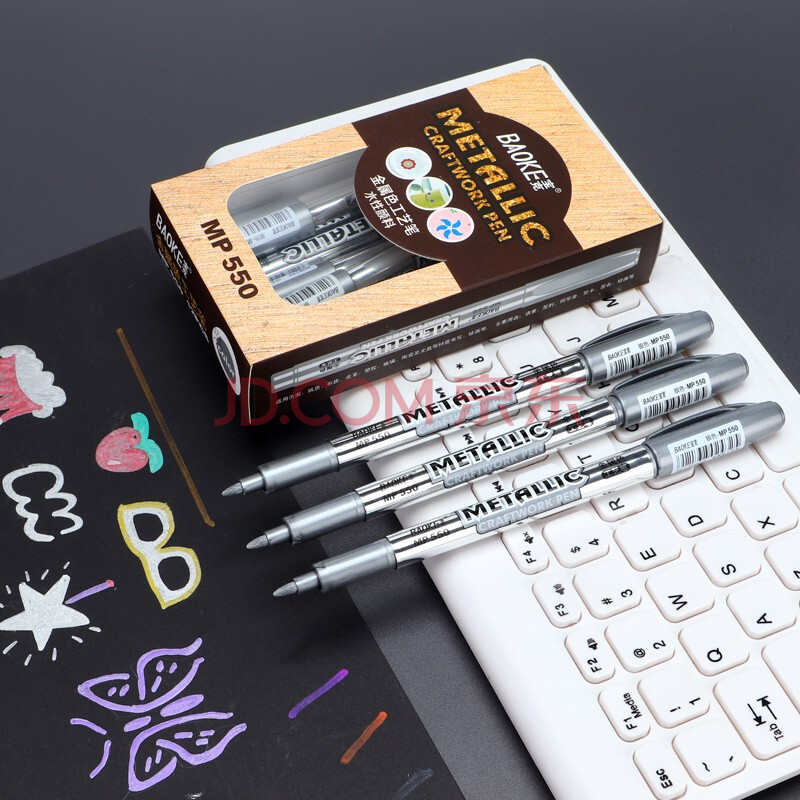 商品相册:宝克(BAOKE) BAOKE MP550 油漆笔 银色 水性记号笔签到笔涂鸦笔 12支/盒第