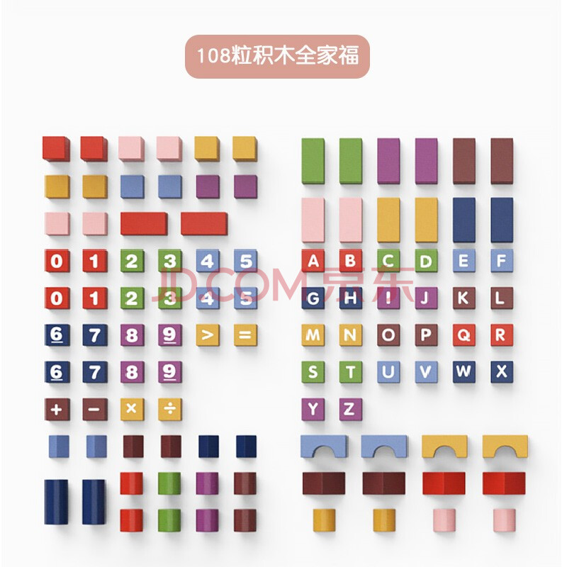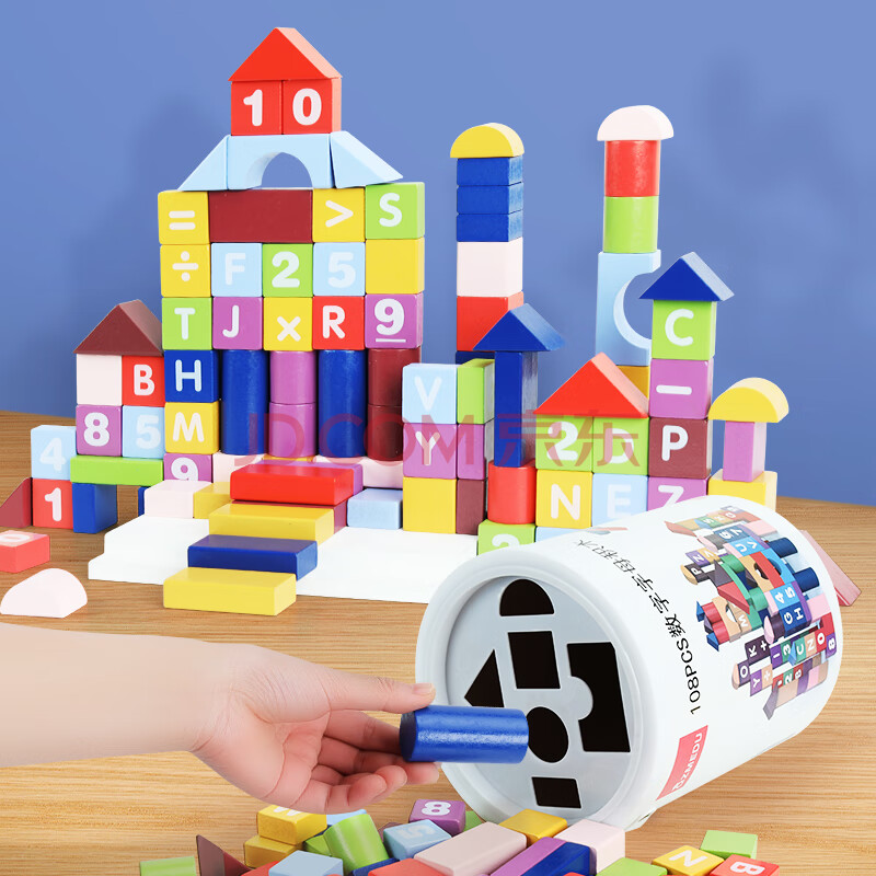 商品相册:QZMEDU108粒大颗粒积木玩具木质拼插男孩女孩桶装儿童早教益智生日礼物第