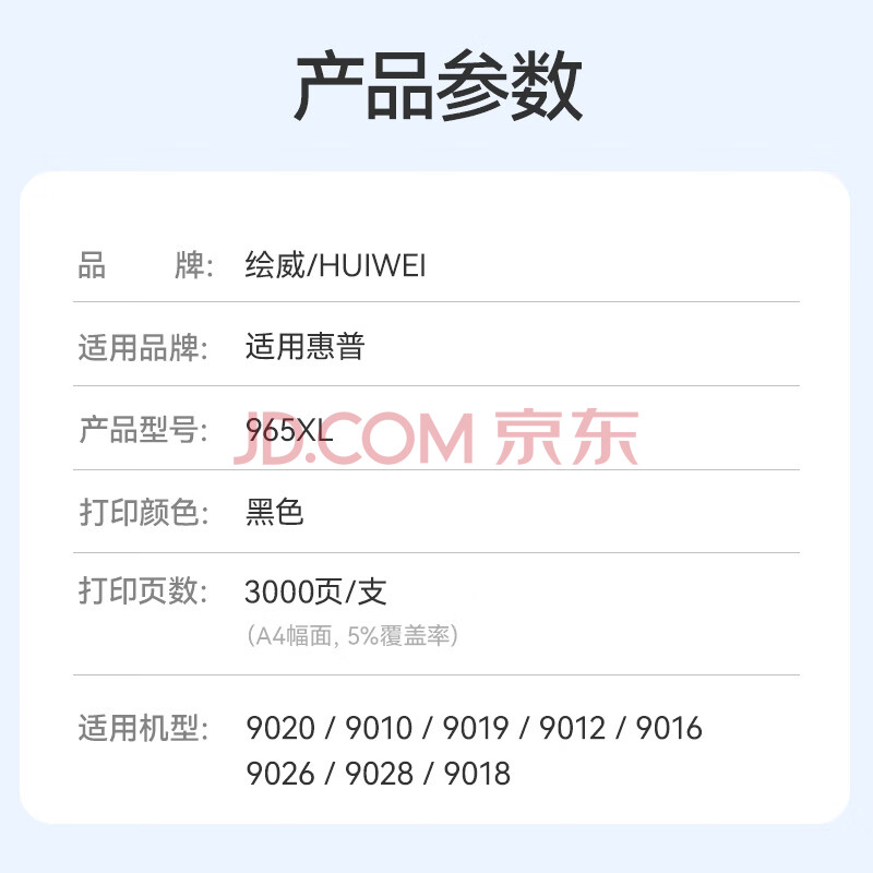 商品相册:绘威965XL墨盒 适用hp惠普9020 9010 9019打印机墨盒officejet pro 9012 9016 9026 9028 9018墨盒 黑色第