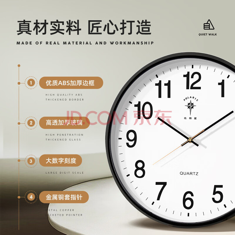 商品相册:北极星(POLARIS) 挂钟客厅简约创意石英钟时尚卧室静音钟表现代时钟欧式挂表26cm第